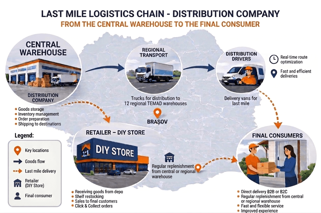 The direct takeover of distribution to Dedeman, as well as to traditional trade stores located in the counties of Botoșani, Suceava, Iași, Bacău, Neamț, and Vaslui, means more than a logistics change. It means: