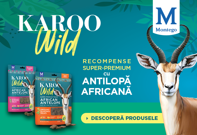 - Karoo Wild – recompense super premium cu antilopă africană, inspirate din natură, cu ingrediente atent alese și combinații autentice;